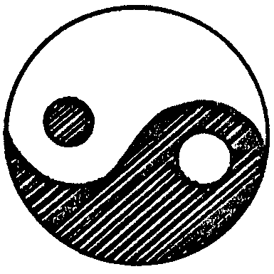 Часто расположение точек на теле выстраивается в совокупность взаимосвязанных точек и образует линию, канал, меридиан. На Востоке существует понятие о циркуляции некоей энергии, о ее избытке или недостатке в разные периоды суток. Симптомы взаимных превращений прекрасно демонстрированы на символе монады (рис. 2), где колебания ИНЬ и ЯН как отдельной системы и органа уравновешиваются. Любое смещение и переизбыток в одну из сторон ведет к заболеванию и нарушению нормальной функции органа.
