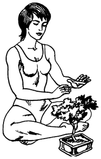Если вы готовы начать упражнение, оденьте подходящую одежду, сядьте в том месте, где никто вас не побеспокоит. Лучше, чтобы занятия проходили на свежем воздухе, но выбор будет зависеть от погоды и вашего самочувствия. Если вы предпочитаете практиковать в помещении, подберите для этой цели цветок в горшке — например, какое-нибудь вечнозеленое деревце — и поставьте его рядом с вами. Для этого очень подходит «бонзай» (рис. 91). Поскольку растения вырабатывают кислород, это несколько облегчит ваше дыхание, а также преподаст вам урок искусства «бездвижности». Глядя на него, вам будет легче фокусироваться во время тренировки.