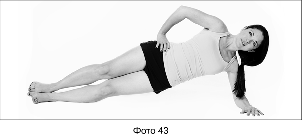 2. Приподнимитесь, опираясь на левую стопу и левое предплечье (см. фото 43). Корпус не должен «проседать». Плечо должно находиться точно над локтем.