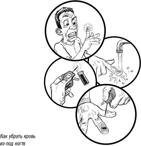 4. Когда скрепка раскалится докрасна, легонько ткните ею в ноготь в центре гематомы – всего на секунду. Вам нужно лишь проделать маленькую дырочку. Повторяйте, пока не потечет кровь. В какой-то момент может быть больно, но затем наступит облегчение{19}.
