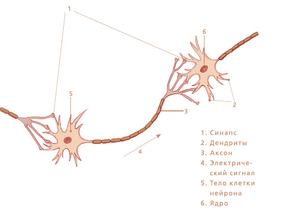 Нейрон состоит из трех частей: тела клетки с ядром, в котором хранится генетическая информация, дендритов – нитевидных отростков, напоминающих ветки дерева, и аксона – нервного окончания, проникающего в другие ткани или соединяющегося с другим нейроном. Эта паутина соединений образует нейронную сеть, осуществляющую коммуникацию внутри нормально функционирующего мозга.