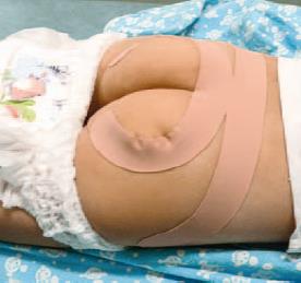 До проведения тейпирования пациент более года был на реабилитации с хорошими результатами. Тейпинг проводился для усиления определенного результата реабилитационной терапии: у пациента отмечались явная нестабильность при опоре на правый тазобедренный сустав (уход от вертикальной оси опоры с упором в натяжение капсулы т/б сустава, малой ягодичной мышцы и т. д.) и сильное нарушение фазы переноса левой нижней конечности, осложненное выраженным симптомом Тренделенбурга справа.
