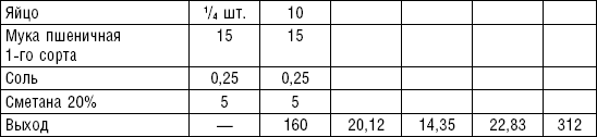 Сырники со сметаной. В протертый творог добавляют яйца, сахар, соль, муку, все перемешивают до получения однородной массы. Массу раскатывают на столе в жгут толщиной в 5–6 см, разрезают в поперечном направлении на кружки по 2–3 на порцию, панируют в муке, придают им форму лепешек толщиной 1,5 см. Жарят на масле с обеих сторон до образования румяной корочки. Подают на стол со сметаной.