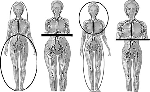 Если отток от головы затруднен из-за блоков в надключичных и подключичных лимфатических узлах, то нарисованная потоками жидкостей картина тела будет не столь очевидной.