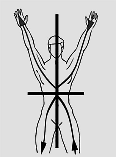 Эти чаши держатся на гравитационной вертикали, проходящей через вершину головы и промежность.