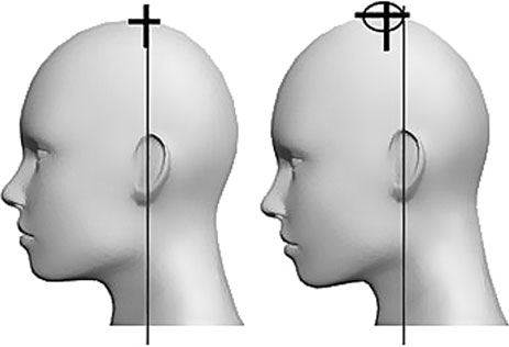 Рис. 51. Корректное (слева) и некорректное (справа) положение макушки