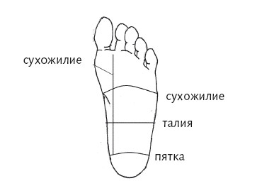• Область подобия позвоночника протянута вдоль внутренней кромки стоп, от большого пальца до пятки.