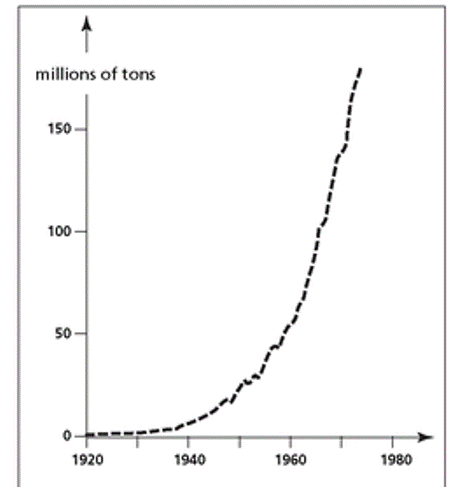 Рис. 11. Производство синтетических химикатов, включая пестициды – новый феномен, отметивший конец XX века (80).