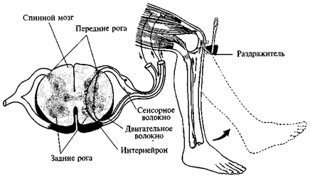Спинальные рефлексы. Особый интерес представляет собственно рефлекторная деятельность спинного мозга (так называемые спинальные рефлексы) — относительно простые виды реакции, которые осуществляются на уровне спинного мозга без участия вышележащих структур.