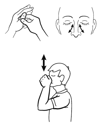 Выполнять в положении стоя или сидя. Предварительно потереть наружные стороны средних фаланг больших пальцев до согревания, затем этими пальцами выполнять восемнадцатикратный массаж носа вверх и вниз (18 растирающих движений вверх и столько же вниз). Упражнение предохраняет от насморка и улучшает кровообращение верхних дыхательных путей.