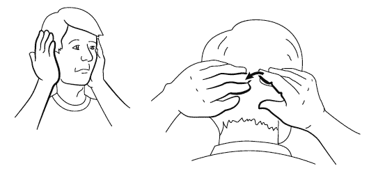Выполнять в положении стоя или сидя. Двумя руками вверх и вниз проделать массаж ушей, повторяя действие восемнадцать раз. Затем, сжав ладонями уши, пальцы приложить к затылку. Указательным пальцем слегка постукивать по среднему 36 раз (слышен звук: «дунь-дунь»). Упражнение помогает при головных болях, избавляет от головокружения.