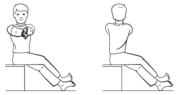 Выполнять в положении сидя. Перекрещенными руками удерживать затылок, поднять голову, смотреть вверх. Руками стараться согнуть корпус вниз, шеей сопротивляться этому. Повторить 8–9 раз. Упражнение улучшает кровообращение, движение спинномозговой жидкости, такая тренировка помогает при бессоннице, головокружении и болях в плечах.