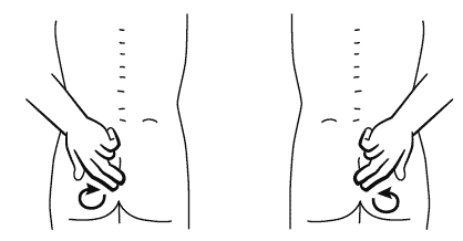 Выполнять в положении стоя. Указательным и средним пальцами каждой руки произвести массаж копчика, делая вращательные движения внизу спины с правой и с левой стороны копчика – по 36 раз. Упражнение помогает при геморрое и заболевании половых органов.