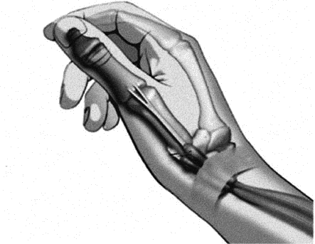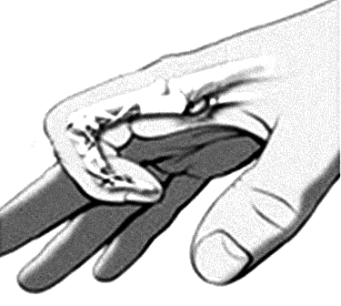 Нодулярныйтендосиновит сгибателей пальцев («защелкивающийся палец»). «Защелкивающийся палец» – заболевание, при котором вследствие воспаления сухожильных влагалищ поверхностных сгибателей пальцев кисти происходит заскакивание или защелкивание пальца при сгибании, когда разгибать палец приходится с посторонней помощью (рис. 4.4).