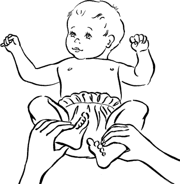 Положите малыша на спинку, возьмите его ножки в свои руки и похлопайте его ступнями друг о друга.