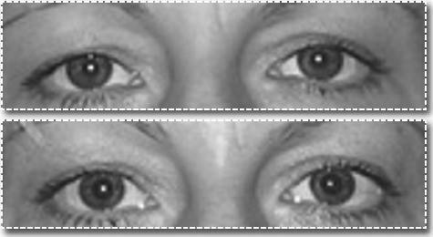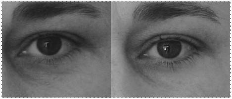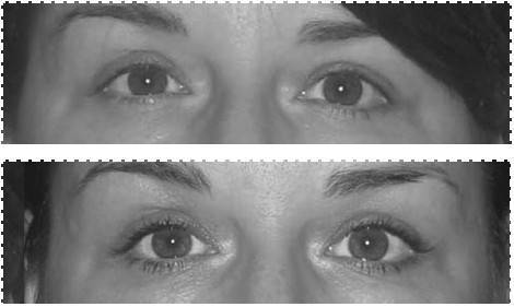 Раскрытие орбиты глаза, расслабление круговой мышцы глаза, приподнимание линии бровей и выравнивание их асимметрии, сглаживание границы «веко– щека», глаза стали более открытыми.