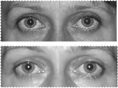Уменьшение отечности, нависания верхнего века и глубины носослезной борозды.