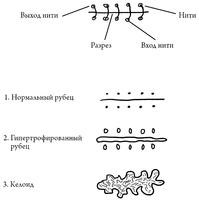 Возникший рубец огорчает, если он заметен косметически или сковывает подвижность суставов, если он чешется или болит, тянет, твердый и неэластичный. Иногда рубцы утолщаются и поднимаются в форме желвака над изначальной линией пореза. Дерматологи называют такие объемные трехмерные рубцы избыточно разросшимися, или гипертрофическими.