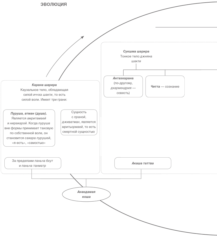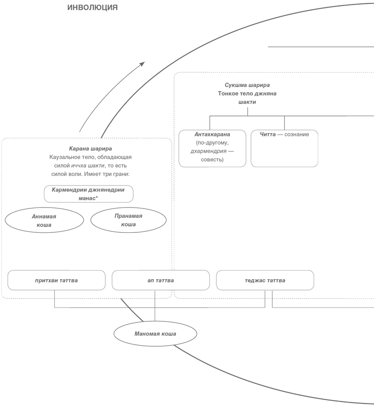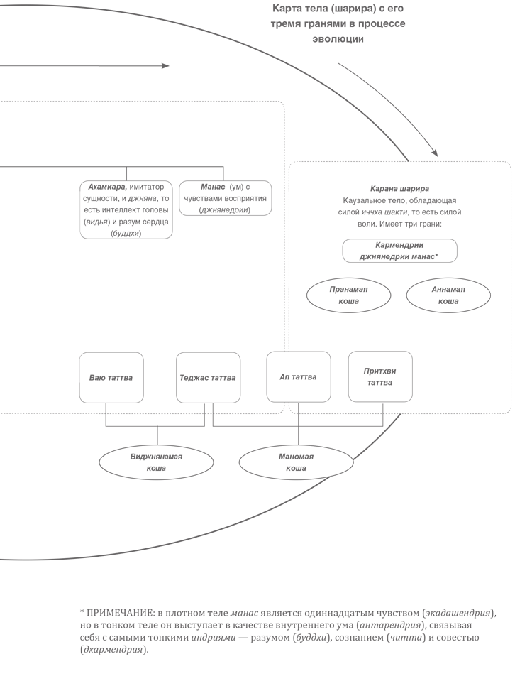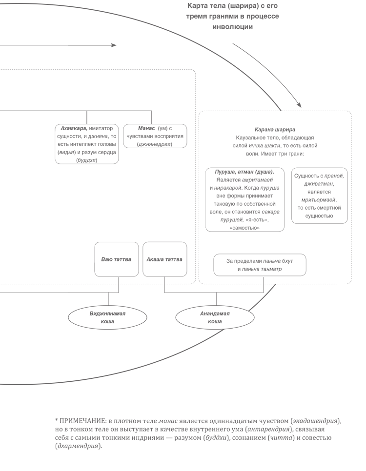 Подобная классификация предназначена исключительно для того, чтобы несведущие, незнающие садхаки смогли обнаружить тесную взаимосвязь трех шарир (плотное, тонкое и каузальное).