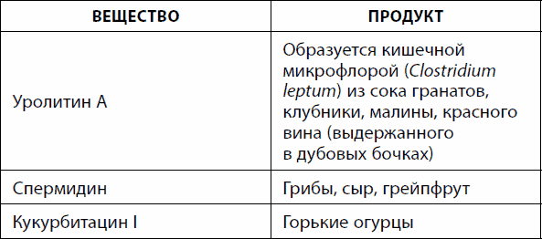 Как уже упоминалось, mTOR подавляет процесс аутофагии. Его можно простимулировать, употребляя меньше белков животного происхождения либо продукты, содержащие определенные вещества (табл. 23). Аутофагия не только способствует омоложению на клеточном уровне, но и активизирует регенерацию тканей, например мышечной.