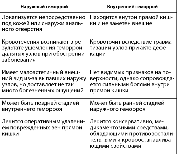 Сходства и различия внутреннего и наружного геморроя
