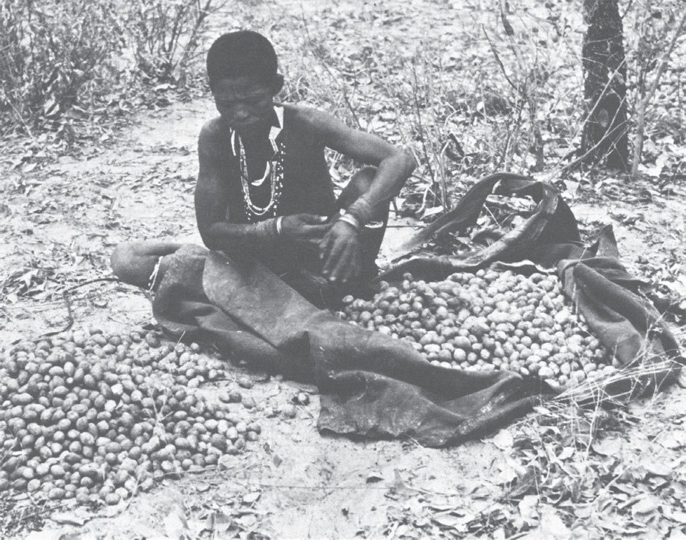 Рис. 16. Мужчина кунг-сан собирает орехи монгонго. Взято из книги Ричарда Ли «Кунг-сан» с разрешения Cambridge University Press.