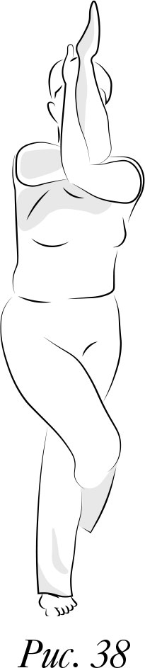 Большинству людей эта поза сначала кажется трудной, но при желании можно научиться ей за короткое время: поставьте ноги вместе, чуть согните колени, перенесите вес на левую ногу. И постарайтесь оплести (как оплетает вьюнок) правой ногой верхнюю поверхность левой, чтобы пальцами правой ноги вы могли зацепиться за голень левой… Чтобы все получилось, левая нога должна быть чуть согнутой.