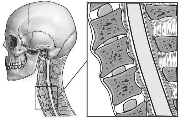 А что в действительности имеем мы? Обычно с возрастом наш позвоночник начинает деформироваться, «проседать», менять статику. В результате небольшой физиологический изгиб гипертрофируется, и шейные позвонки начинают проваливаться внутрь шеи, что особенно интенсивно происходит при «сидячей» работе.