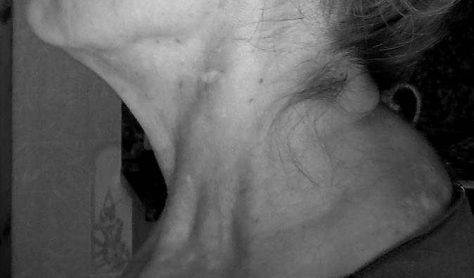 Появление поперечных морщин и складок на боковой поверхности шеи служит точной приметой этого явления.