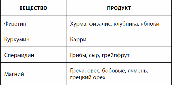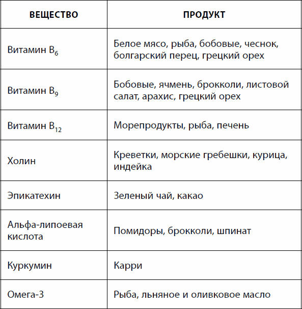 Таблица 8. Питательные вещества, способствующие нейропротекции