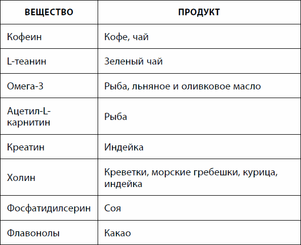 Таблица 9. Питательные вещества, способствующие эффективности памяти