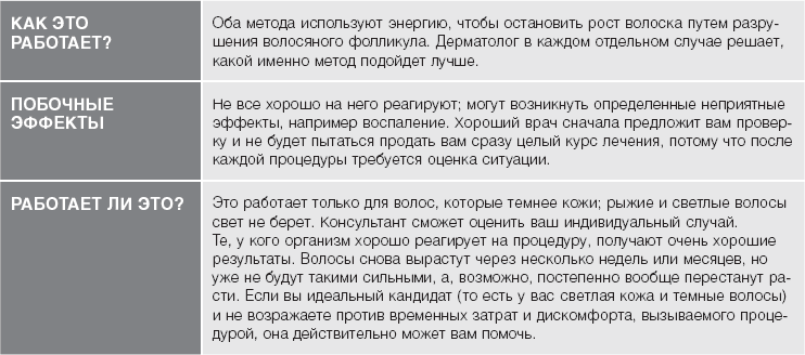 Удаление волосков с помощью лазера или высокоимпульсного света