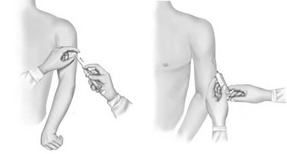 Рис. 11. Захват складки кожи треугольной формы для выполнения подкожной инъекции