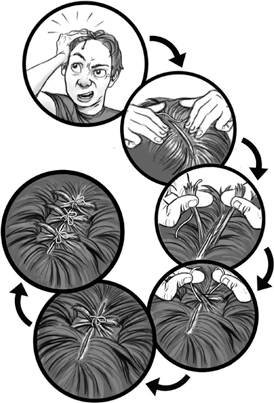 Если у вас рана на голове и при этом вы не лысый, пластырь к коже головы не приклеишь. Можно, конечно, прибегнуть к помощи суперклея, однако есть еще один вариант: использовать волосы{32}.