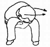 4. Крепко сожмите зубы. Наклон назад начинайте с движения головы. Запрокидывайте голову назад до ощущения напряжения во фронтальных мышечных связках шеи. Не позволяйте голове просто откинуться назад — это негативно влияет на позвонки шейного отдела. При правильном выполнении этого элемента вы почувствуете, что шея как бы вытягивается вверх. Ощущение неудобства может возникнуть при неправильном выполнении этой фазы, либо при попытке запрокинуть голову слишком сильно.