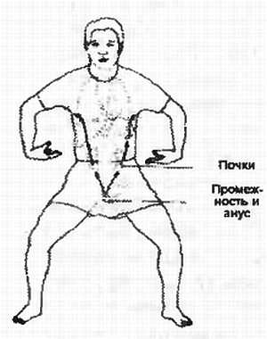 Выдохнув, сделайте живот плоским Затем вдохните, подтягивая кверху левую и правую часть анальной области. Подняв энергию Ци в область почек, упакуйте ее в каждую из почек и оберните последние в энергетическую оболочку.