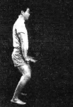 6. Расслабив руки, позвольте им свободно свеситься вперед, сохраняя указанное выше положение пальцев и ощущая, как в каждом из них течет энергия Ци. Дотрагиваясь пальцами до поверхности земли, можно ощутить определенную энергетическую взаимосвязь с землей. Дыхание в этой фазе нормальное.