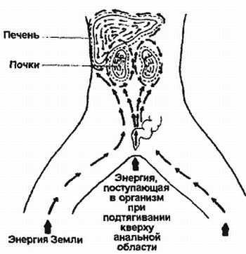 8. Вдохнув, упакуйте энергию Ци в область промежности, одновременно подтягивая кверху половые органы. Откройте область промежности для всасывания энергии, поступающей от Матери-Земли.