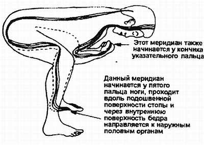 в) Сухожильно-мышечные меридианы пятых пальцев ноги проходят вдоль фронтальной и задней поверхности тела, придавая жесткость его положению и позволяй осуществлять циркуляцию энергии Ци на Орбите Микрокосмоса