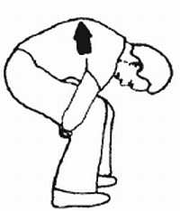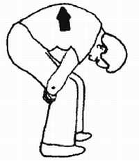 г) Одной рукой возьмитесь за предплечье или локоть другой руки. Согните копчик и голову, как бы пытаясь соединить их вместе. Такое положение очень важно для защиты спины от перенапряжения. При этом плечи должны быть максимально разведены в стороны, а высшая точка тела располагаться в зоне Т-11