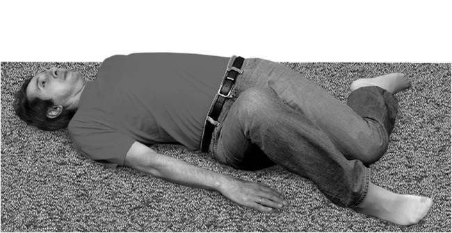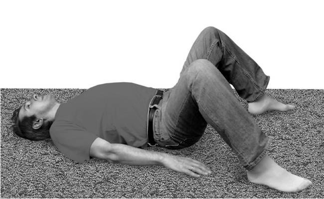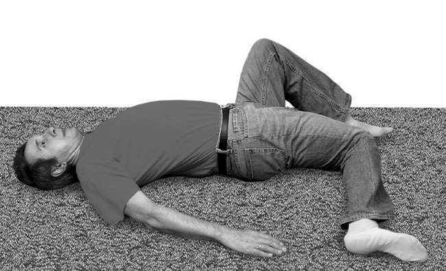 Быстро положите правое колено на пол (если вы лежите на полу) в сторону левой ноги и одновременно сделайте шумный короткий вдох носом. Верните согнутую в колене правую ногу в исходное положение – незаметный выдох. Затем опустите левое колено на пол в сторону правой ноги – вдох. Верните левую ногу в исходное положение – выдох.