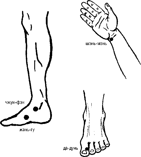 1. ЖАНЬ-ГУ (R-2) находится ниже переднего края бугристости ладьевидной кости, в углублении, на внутреннем своде стопы.