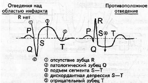 5) отрицательный зубец Т в отведениях, расположенных над областью инфаркта.