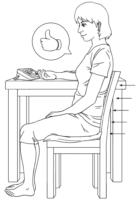 ? При измерении давления в положении сидя спина должна иметь опору. Даже незначительное напряжение мышц вызывает повышение артериального давления.
