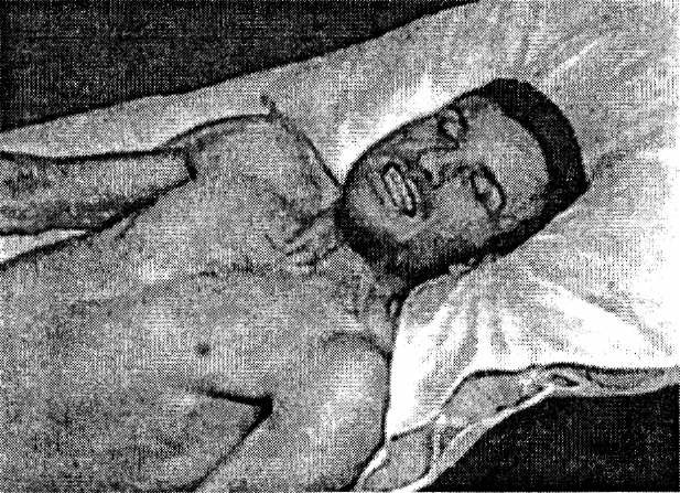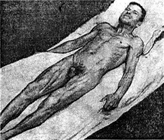 Рис. 28. Общее напряжение мышц во время судорожного припадка (по Г. Н. Цыбуляку)