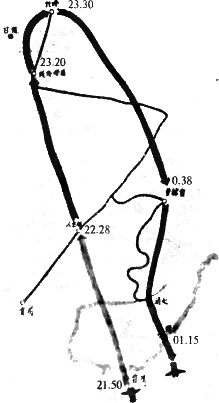 Рис. 1 40. Карта маршрута американского самолета, вторгшегося в воздушное пространство г. Ганьнань 4 апреля 1952 г. Черным кружком обозначен пункт, где были сброшены зараженные полевки. Доклад… (1952)
