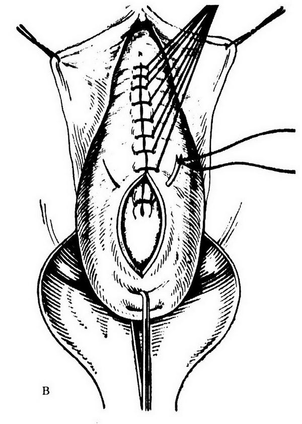7. Операции ушивания (облитерации) влагалища (операции Лефора–Нейгебауэра, Лабгардта) нефизиологичны, исключают возможность половой жизни, развиваются также рецидивы заболевания. Эти операции выполняют только в старческом возрасте при полном выпадении матки (если нет патологии шейки матки и эндометрия) или купола влагалища. К данным операциям прибегают крайне редко.