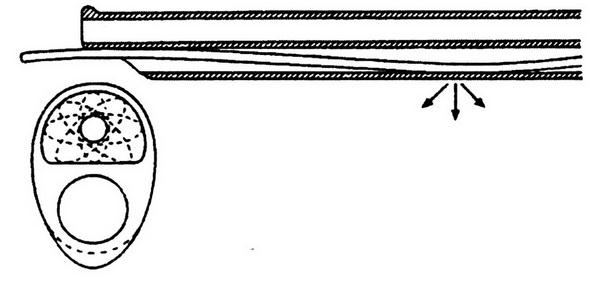 Рис. 2.17. Схема возможного изгиба сонотрода при интенсивном прижатии его к поверхности камня