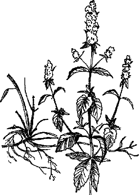 Мята перечная – многолетнее травянистое растение, в диком виде на территории России практически не встречается. Возделывается на приусадебных участках. Лекарственным сырьем являются листья. Их собирают во время цветения, сушат на воздухе, в тени. Листья мяты содержат эфирное масло, состоящее главным образом из ментола, валериановой и уксусной кислот. В листьях содержатся также каротин (до 40 мг%), глюкоза, органические кислоты. Мятное масло при приеме внутрь обладает противовоспалительным действием, тонизирует кровеносные сосуды, уменьшает тошноту, усиливает слюноотделение, работу кишечника, обладает освежающим действием. Применяется мята перечная в виде эликсира, настойки, настоя, входит в состав многих сборов.