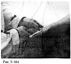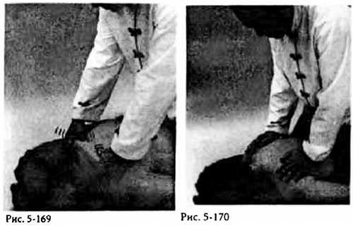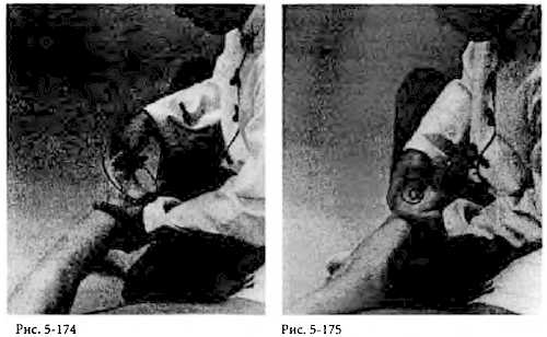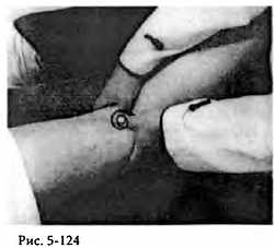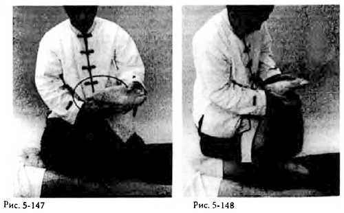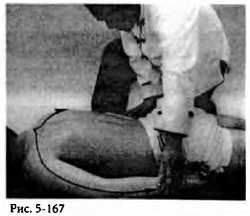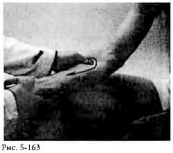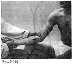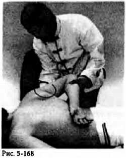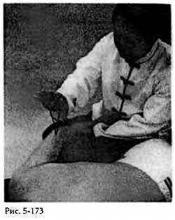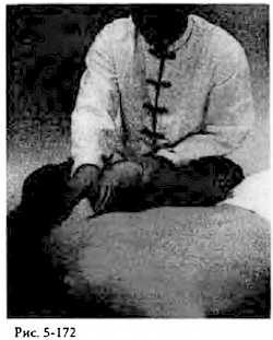 Массируйте их большим, указательным или средним пальцами, прижимая и растирая против часовой стрелки, работая правой рукой (рис. 5-160), и по часовой стрелке, работая левой рукой.